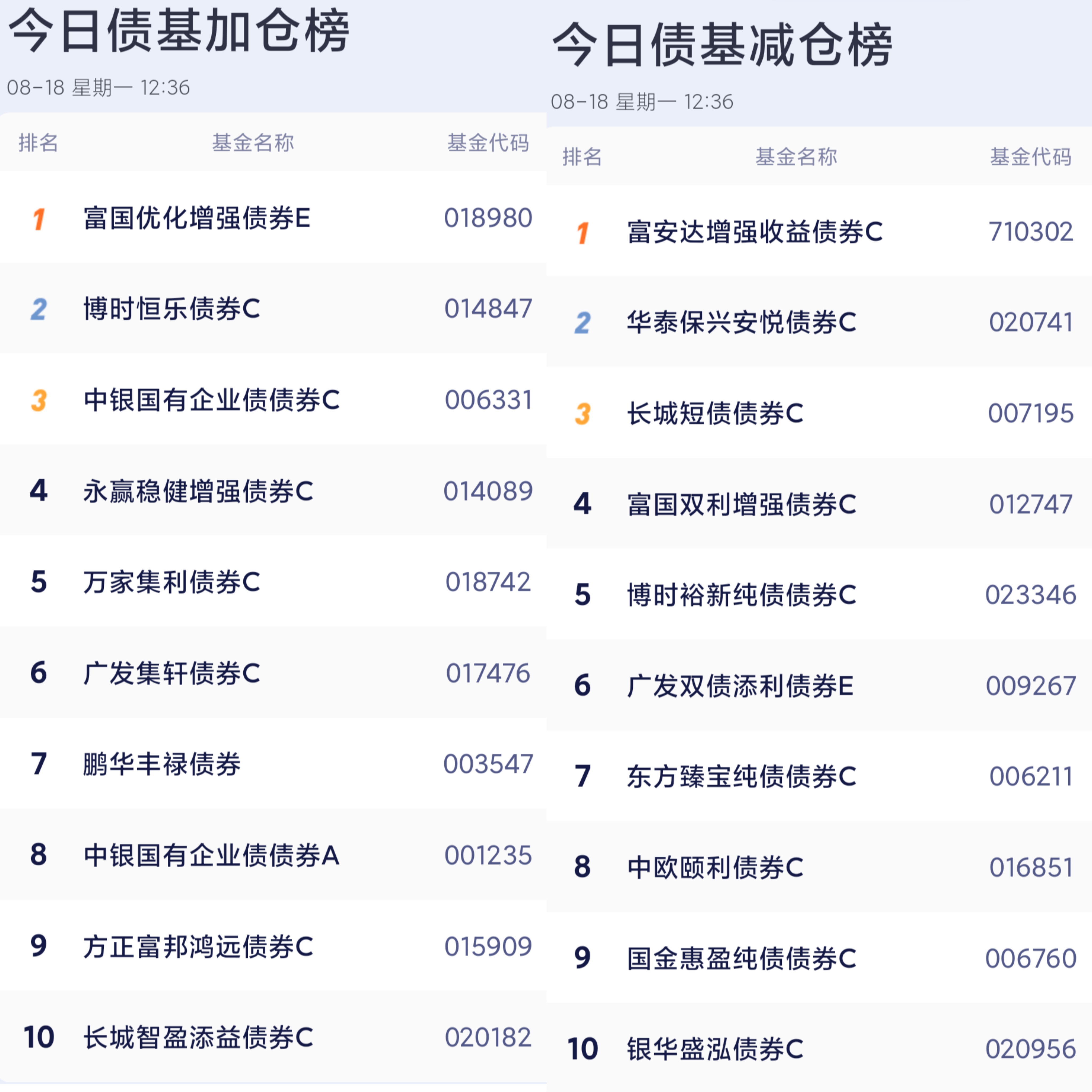 六、债券基金加减仓榜单