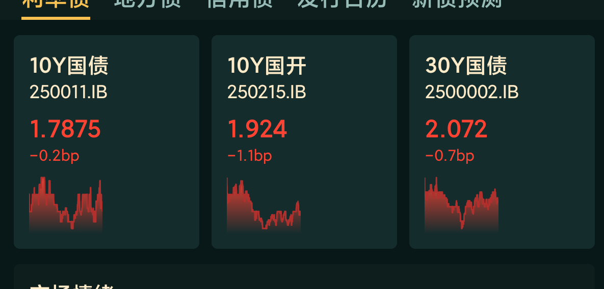 十年期国债收益率:1.7875%,-0.2BP(国债收益率越跌,债市越涨)