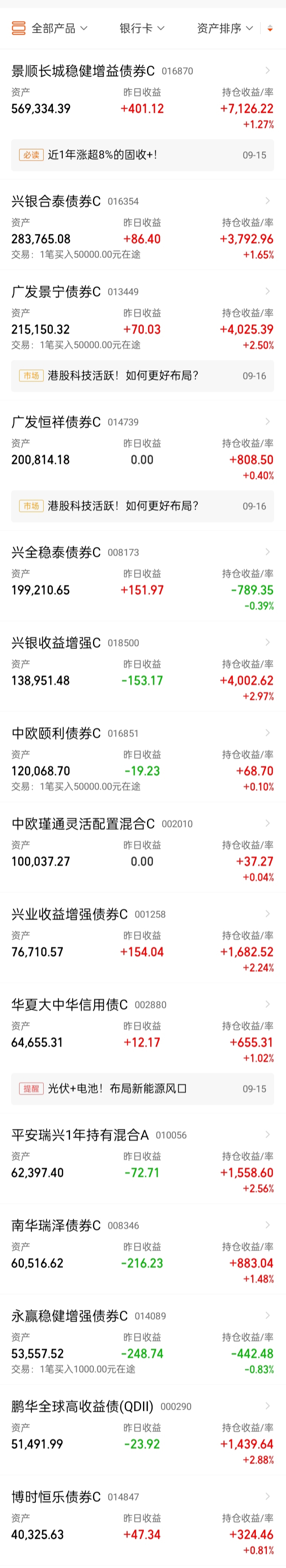 $华安黄金易ETF(OTCFUND|518880)$ 。$永赢鑫欣混合C(OTCFUND|018603)$ 。$永赢科技智选混合发起C(OTCFUND|022365)$ 。$南方中债7-10年国开行债券指数A(OTCFUND|006961)$ 。$摩根双债增利债券C(OTCFUND|000378)$ 。$华泰保兴安悦债券C(OTCFUND|020741)$ 。 $鹏华丰禄债券(OTCFUND|003547)$ 。$东方添益债券(OTCFUND|400030)$