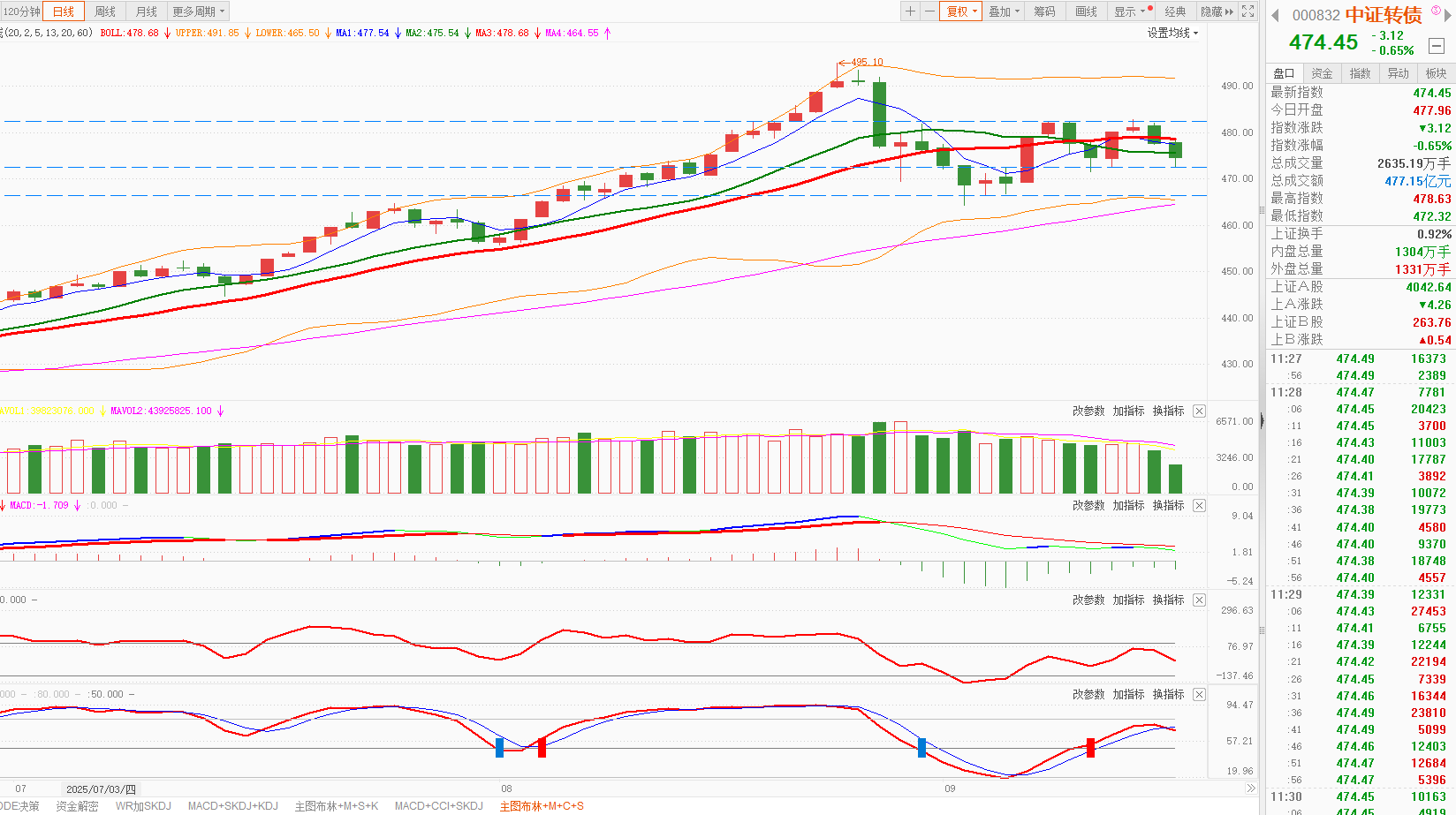 中证转债:跌0.65%,日K线在5、10、20日均线之下,KDJ死叉,MACD死叉绿柱放大。今天中证转债下跌,收中阴线,日K线在下探前期低点后回抽,如能稳住不破前低,后市可能会进行区间震荡,如破前低,则会继续向下调整。