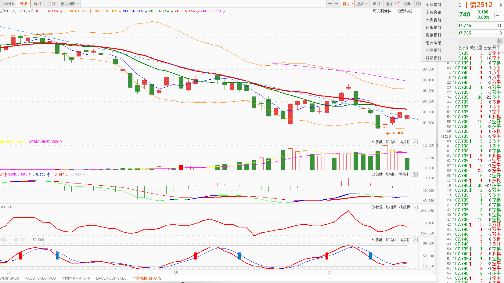 早盘10年国债期货低开快速下探后回升,但整体仍跌0.09%,日K线在5日均线之上。
