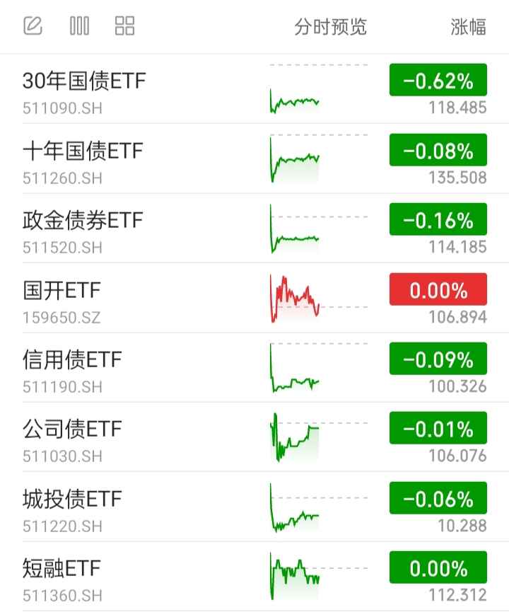 信用债ETF、公司债ETF、城投债ETF,代表信用债基。全部下跌