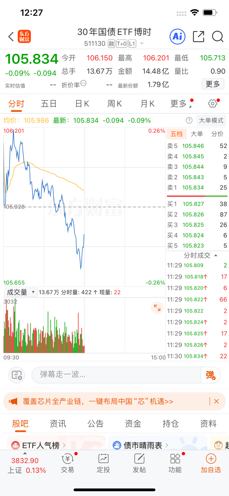 $30年国债ETF博时(SH511130)$ V型反转,看着就舒坦!