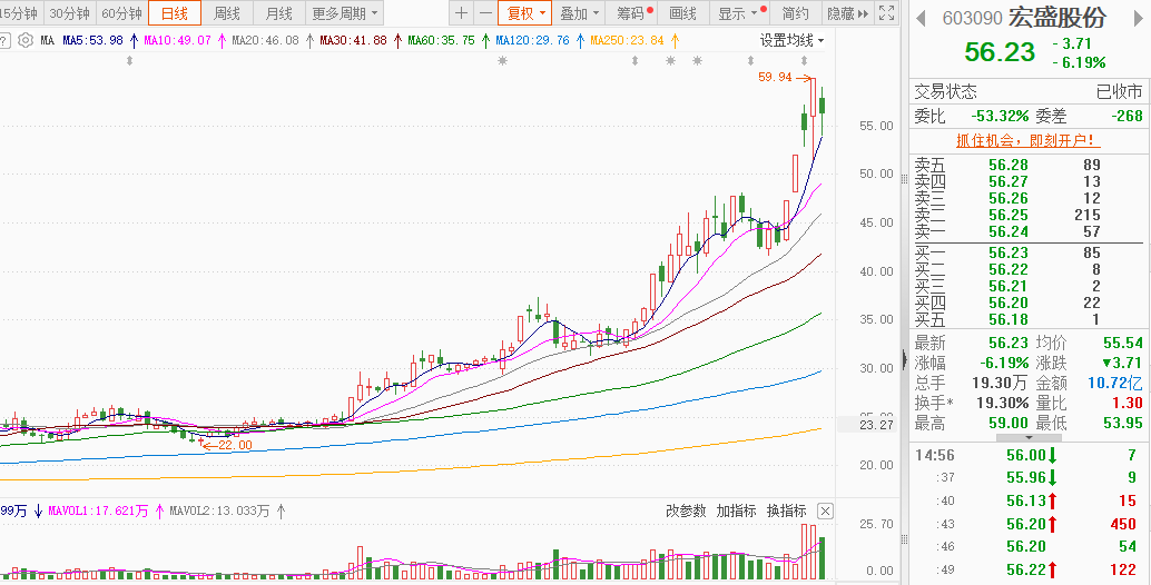 宏盛股份:低开弱势震荡,不过均线支撑不破且依然向上运行,上涨趋势还在没有变化,今天收长下影线的阴线,后续还有继续跟随趋势支撑拉升可能。
