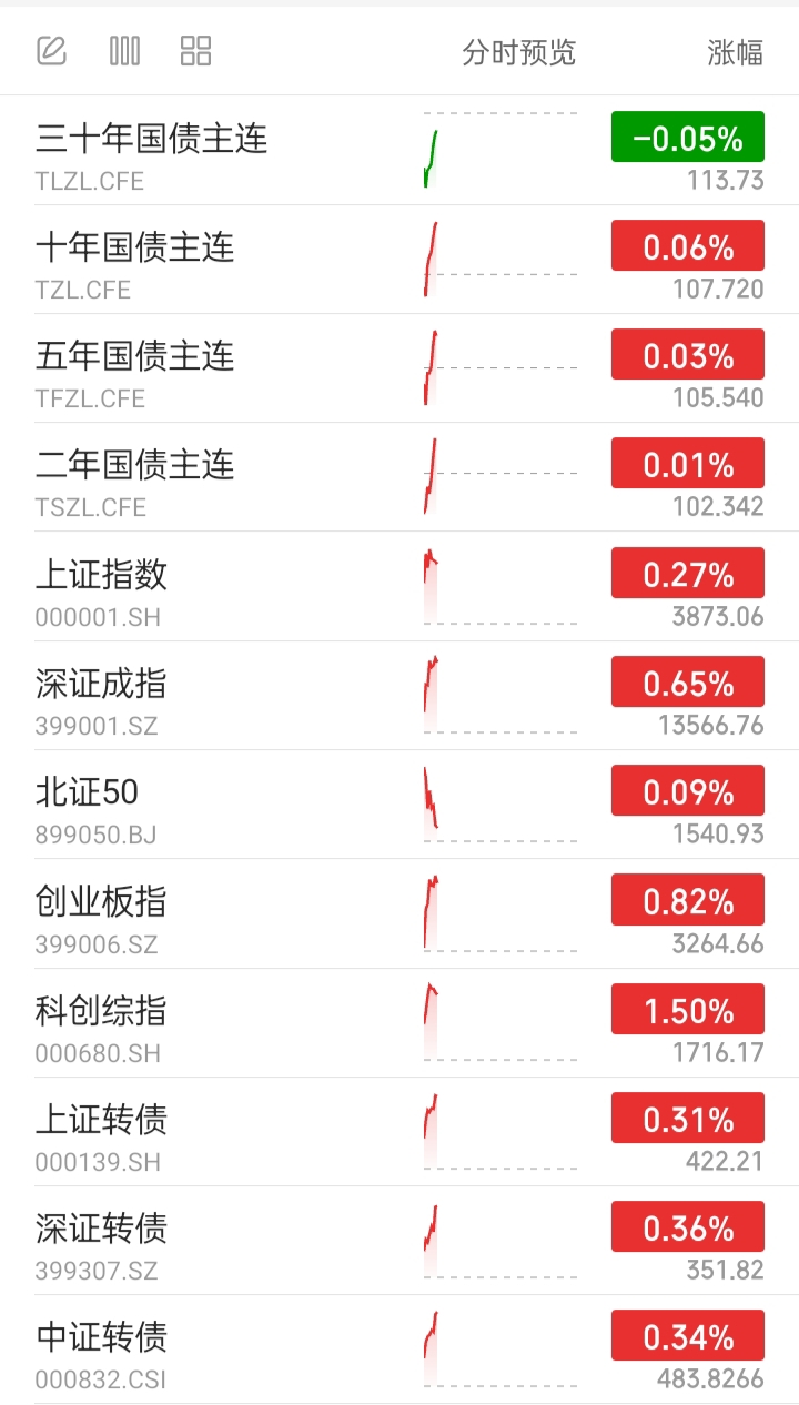 股市主要指数全部上涨,对债市有一定影响。今天偏股混合债基可能收蛋。