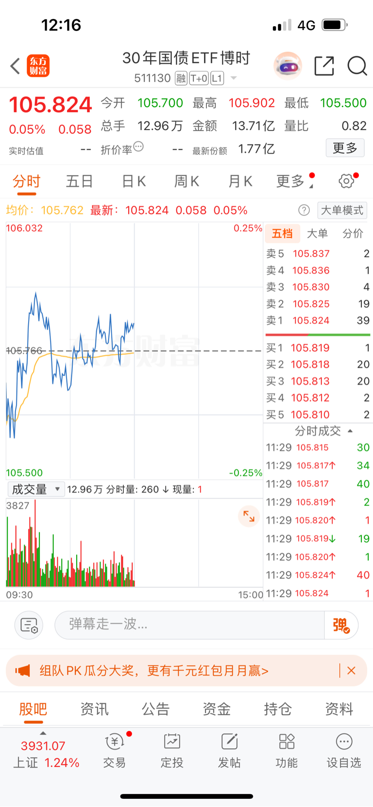 $30年国债ETF博时(SH511130)$ 看好利率下行,现在这个价位,上升空间挺大