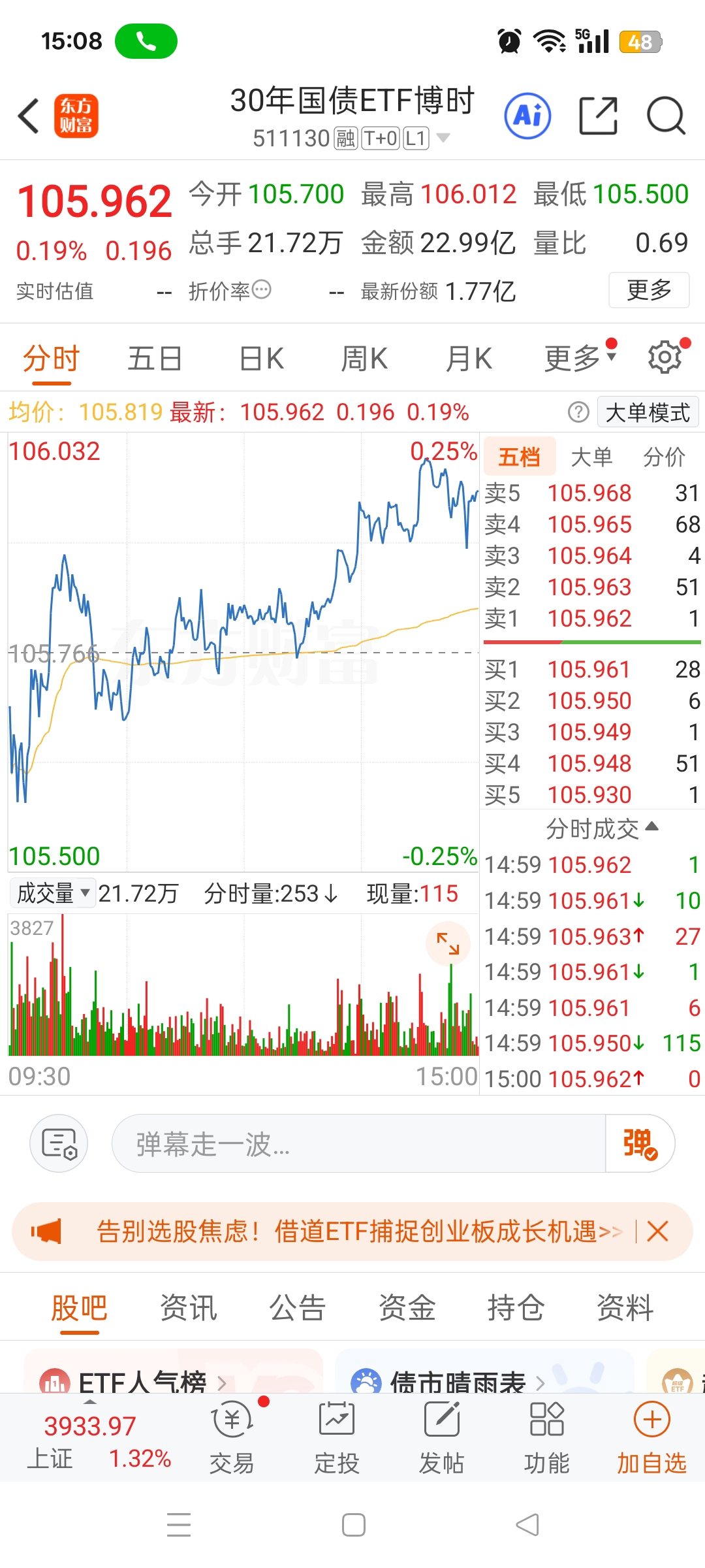 听说外资也在买债,跟了!$30年国债ETF博时(SH511130)$