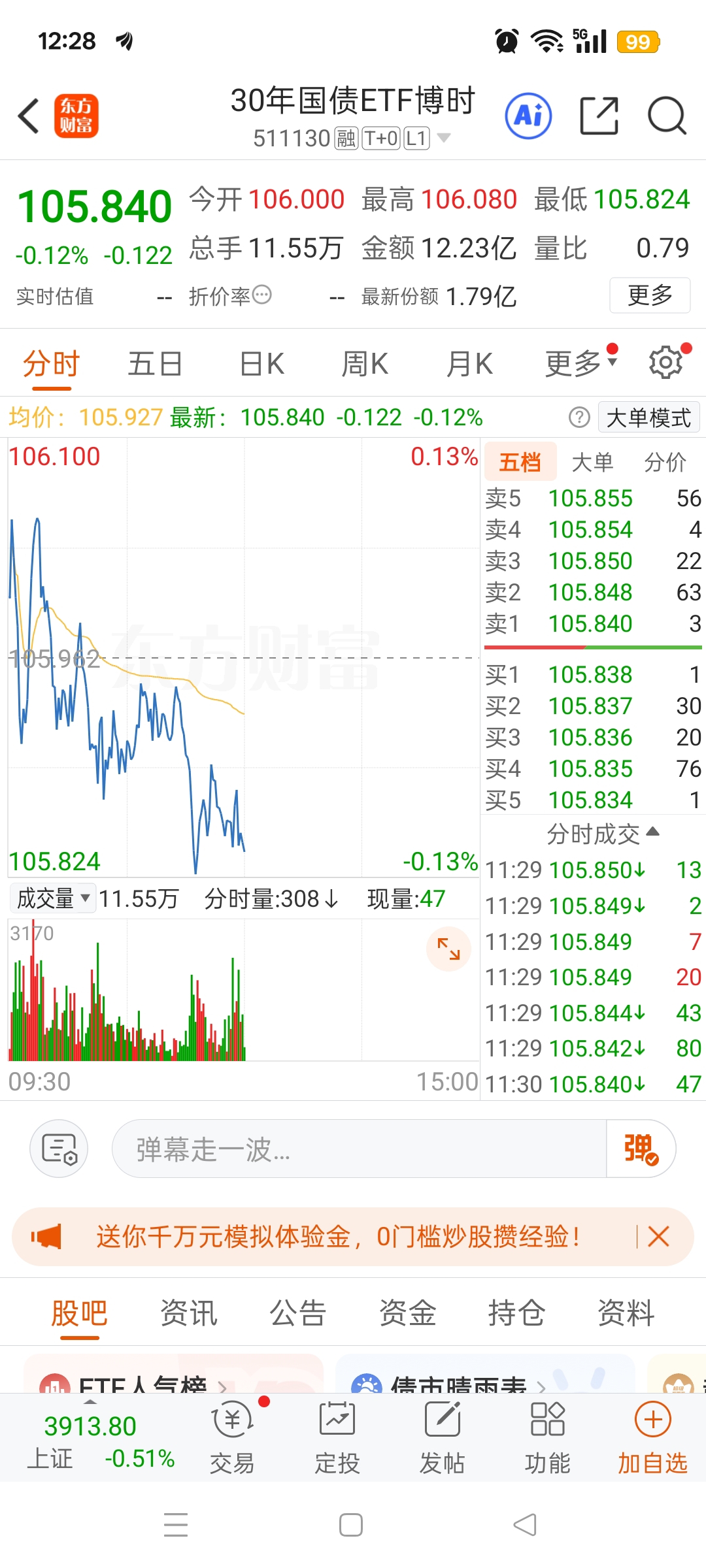 大跌大买,小跌小买,迟早得涨起来的$30年国债ETF博时(SH511130)$