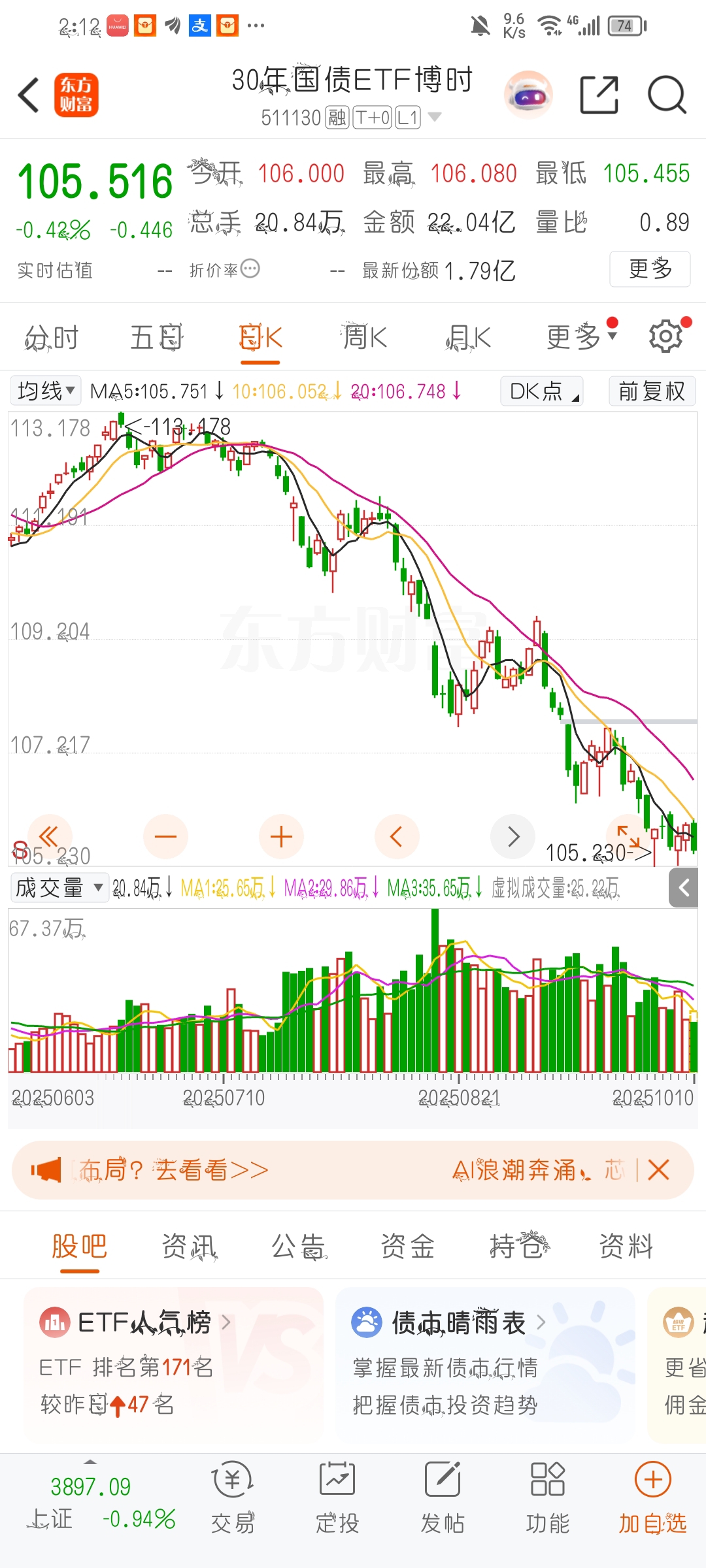 $30年国债ETF博时(SH511130)$ 慢慢加仓,等风来