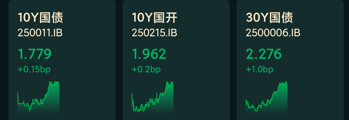 十年期国债收益率:1.779%,+0.15BP(国债收益率越跌,债市越涨)