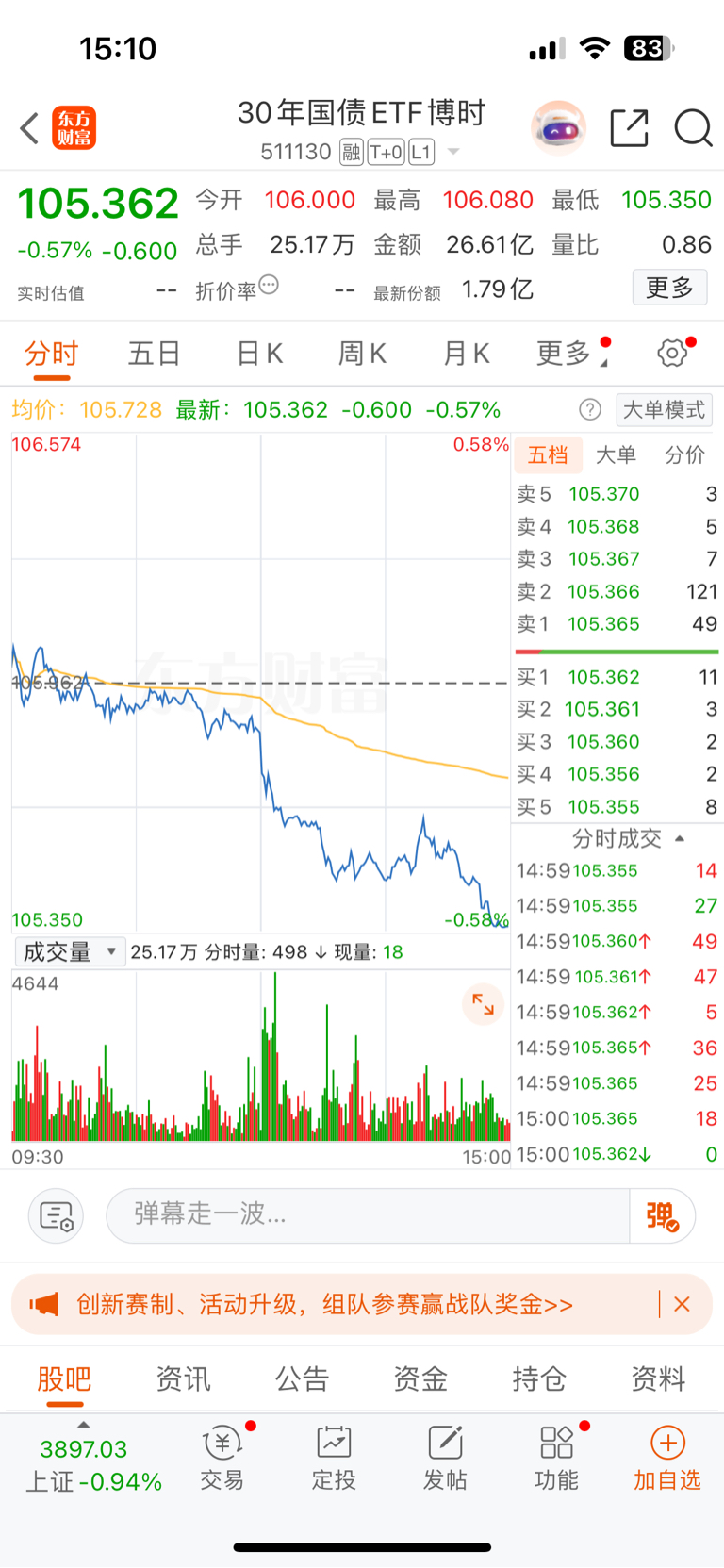 $30年国债ETF博时(SH511130)$ 性价比高地,大概率就是现在了