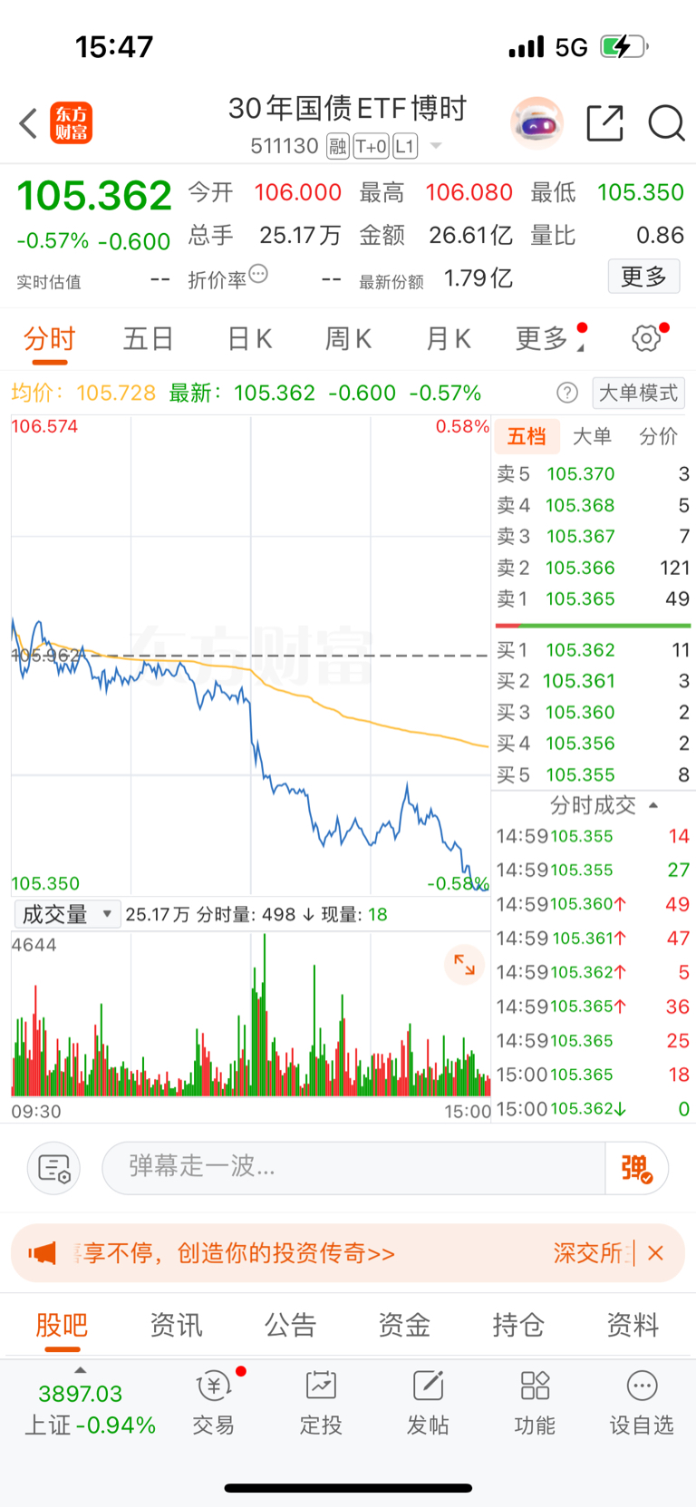 $30年国债ETF博时(SH511130)$ 久期长,反弹起来也快