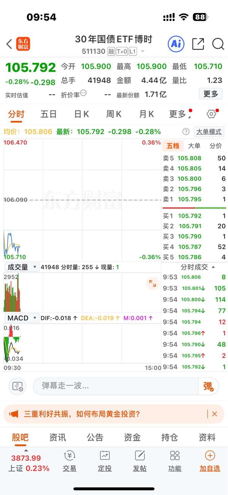 $30年国债ETF博时(SH511130)$ 昨天这个曲线,有点子意思了