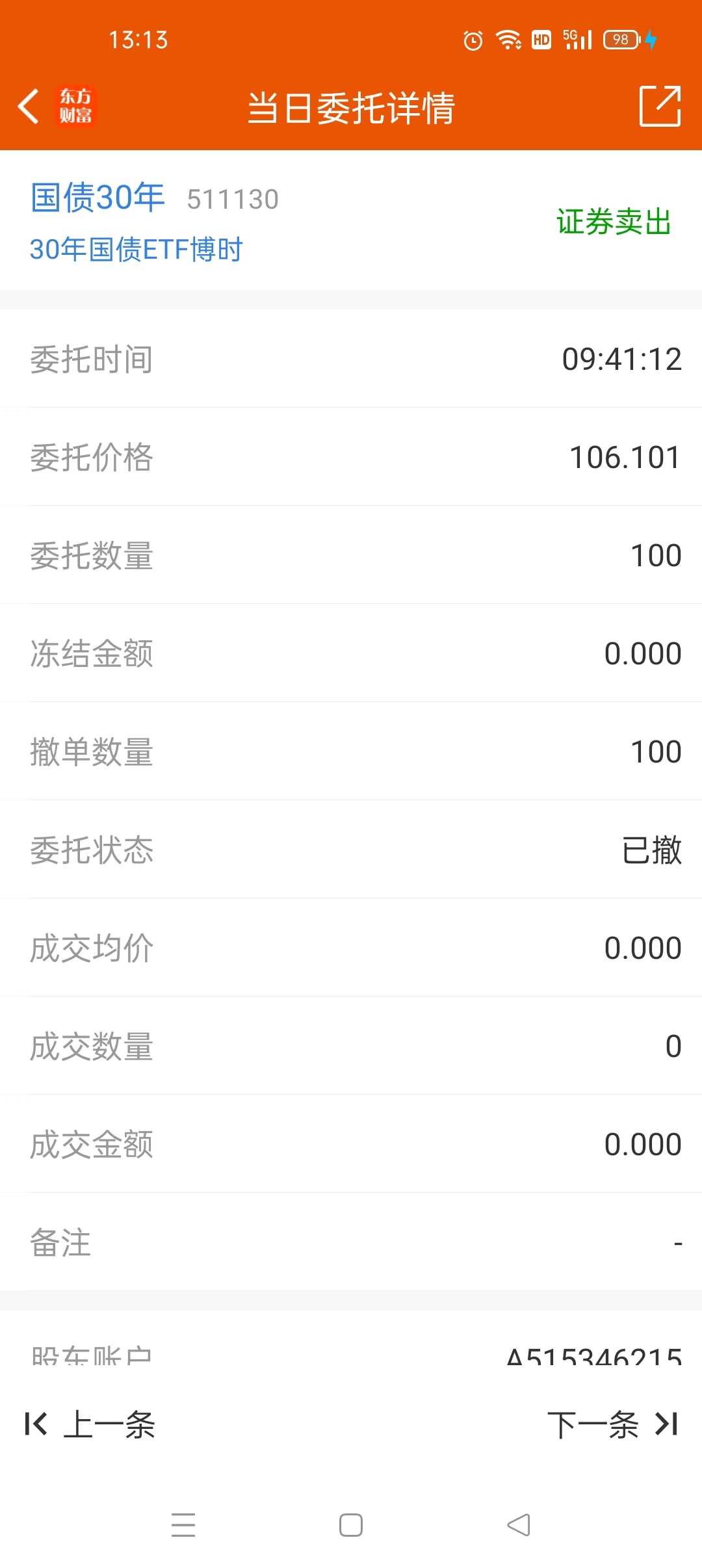 $30年国债ETF博时(SH511130)$ 挂单撤单了,今天最高价格到了我挂的价格,真是手痒