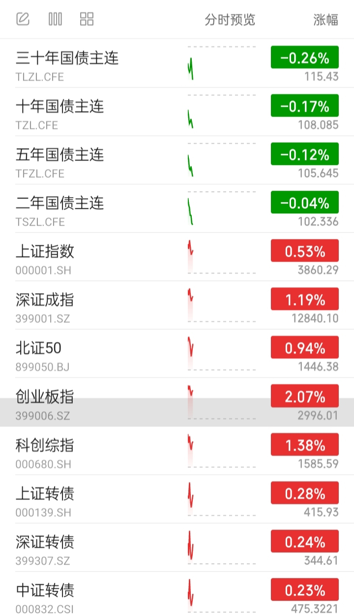 股市主要指数全部上涨,对债市有一定压制作用。今天偏股混合债基可能收蛋。