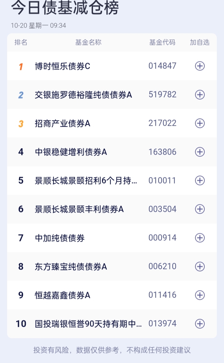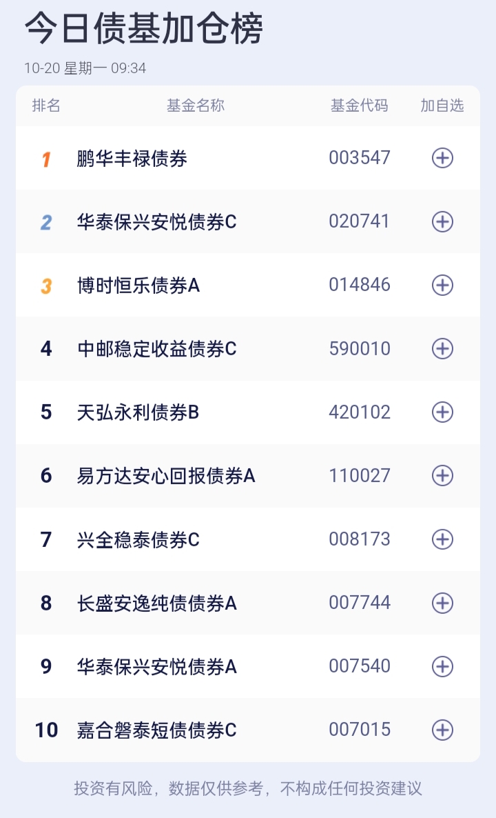 $华泰保兴安悦债券C(OTCFUND|020741)$。$鹏华丰禄债券(OTCFUND|003547)$。$南方中债7-10年国开行债券指数A(OTCFUND|006961)$。$永赢稳健增强债券C(OTCFUND|014089)$。$富国优化增强债券E(OTCFUND|018980)$。$易方达增强回报债券A(OTCFUND|110017)$。$方正富邦鸿远债券C(OTCFUND|015909)$。$东方添益债券(OTCFUND|400030)$。$南方中债7-10年国开行债券指数E(OTCFUND|013594)$。$国泰惠丰纯债债券A(OTCFUND|007214)$