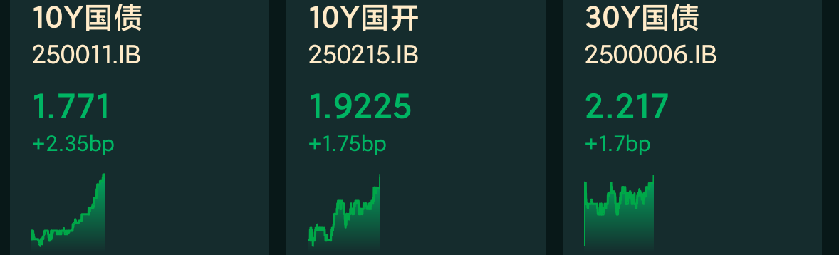 十年期国债收益率:1.771%,+2.35BP(国债收益率越跌,债市越涨)