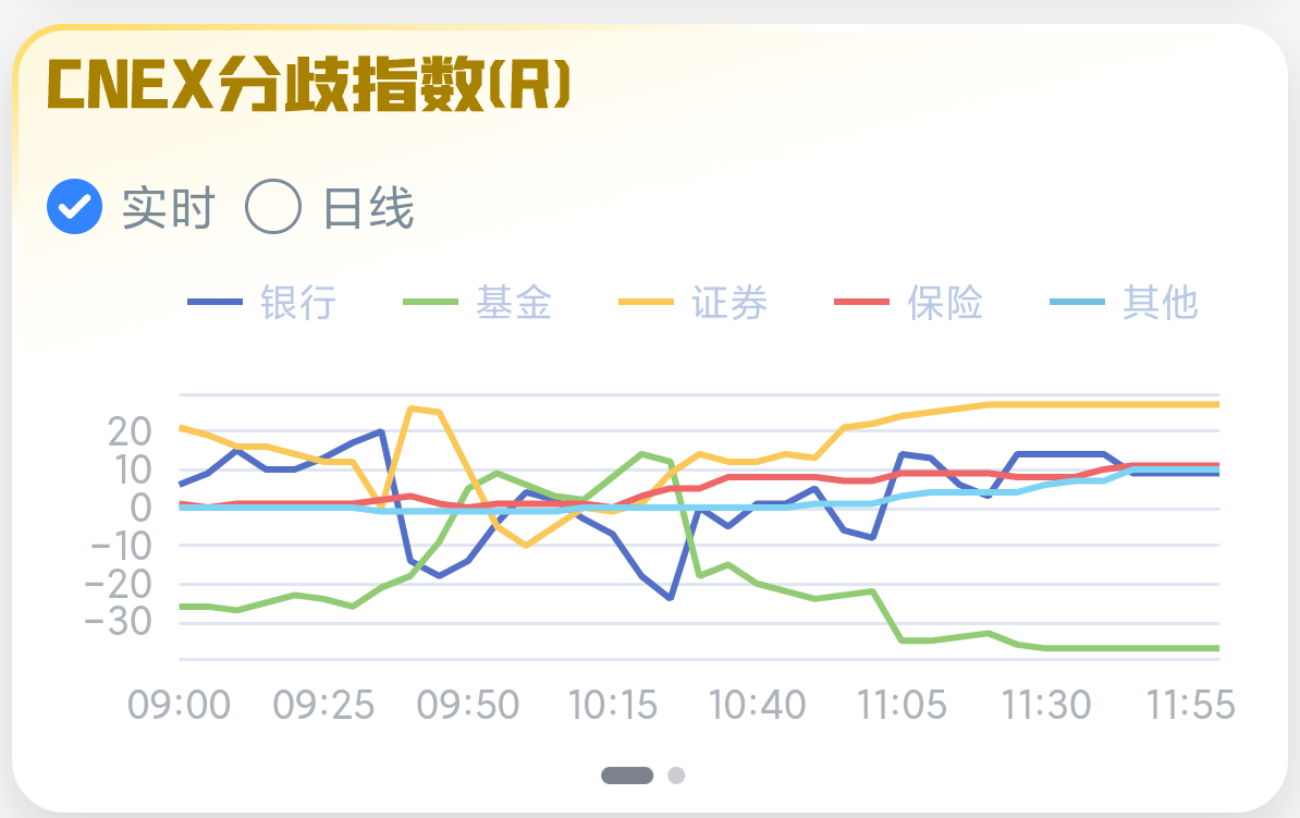 债券分歧指数显示,早盘机构交替买入,券商整体为买入主力,同时卖出10Y国开债,基金近午间卖出趋势持续增强。