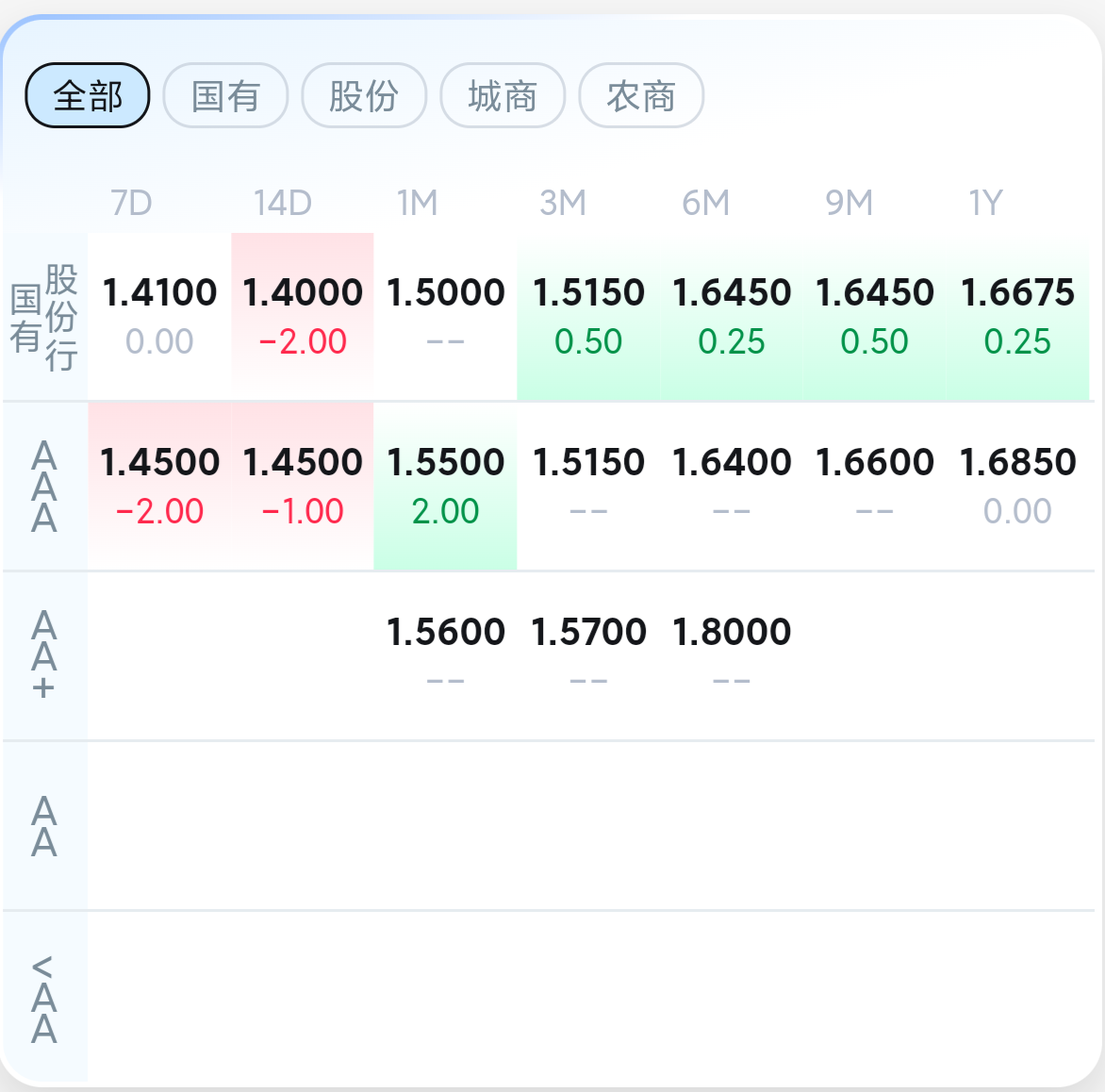 整体数据属于中性,对债市仍有支撑,资金面由紧转松但随着权益市场今日如期反攻,银行间主要利率债活跃券收益率出现上行,信用债多云偏阴。