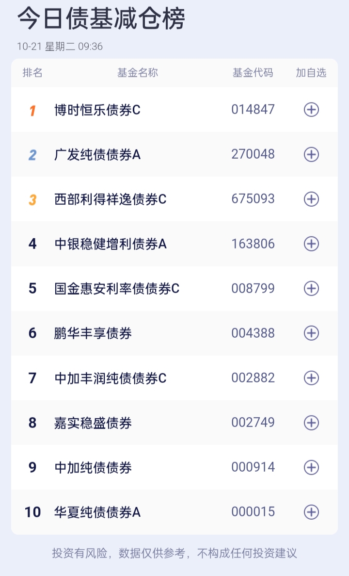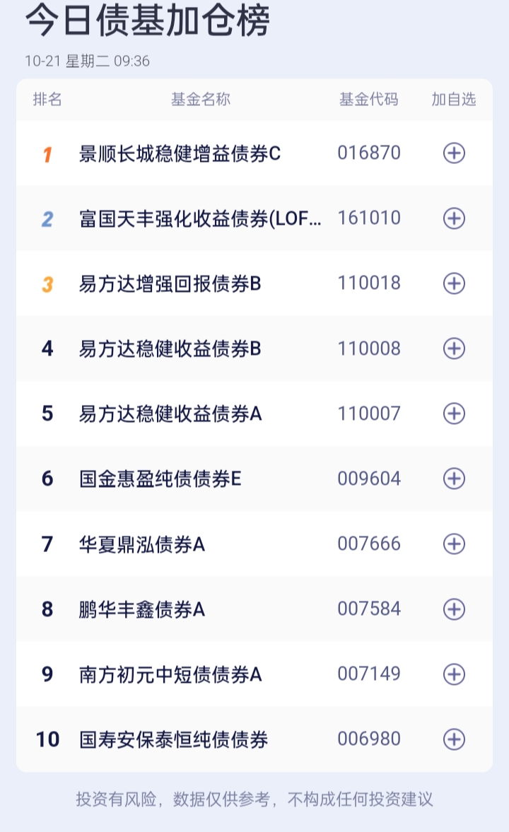 $华泰保兴安悦债券C(OTCFUND|020741)$。$鹏华丰禄债券(OTCFUND|003547)$。$南方中债7-10年国开行债券指数A(OTCFUND|006961)$。$永赢稳健增强债券C(OTCFUND|014089)$。$富国优化增强债券E(OTCFUND|018980)$。$易方达增强回报债券A(OTCFUND|110017)$。$方正富邦鸿远债券C(OTCFUND|015909)$。$东方添益债券(OTCFUND|400030)$。$南方中债7-10年国开行债券指数E(OTCFUND|013594)$。$国泰惠丰纯债债券A(OTCFUND|007214)$