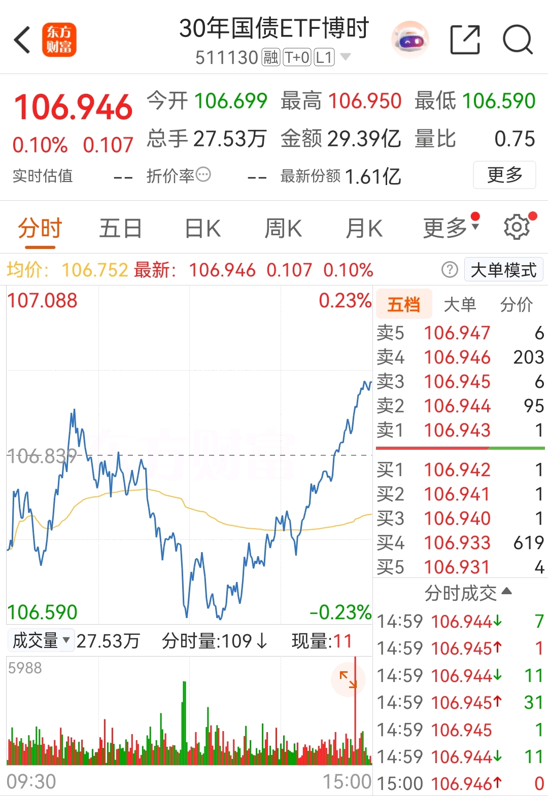 $30年国债ETF博时(SH511130)$ 又红了,不错不错