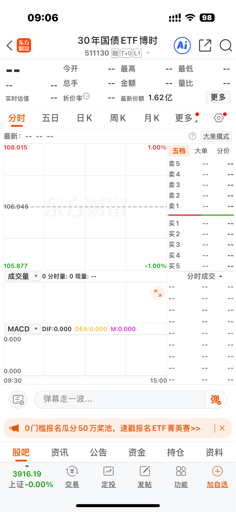 $30年国债ETF博时(SH511130)$ 昨儿尾盘翻红,感觉还挺惊喜