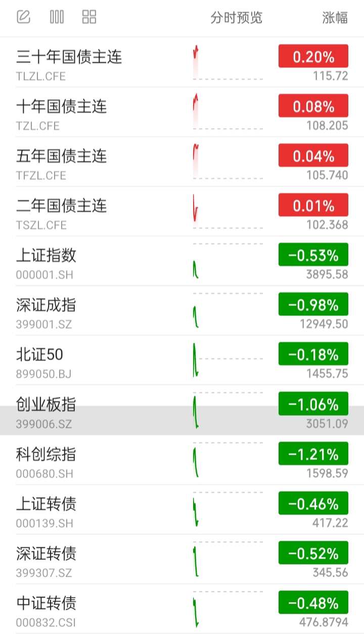股市主要指数全部下跌,对债市有一定提振作用。今天偏股混合债基可能碎蛋。