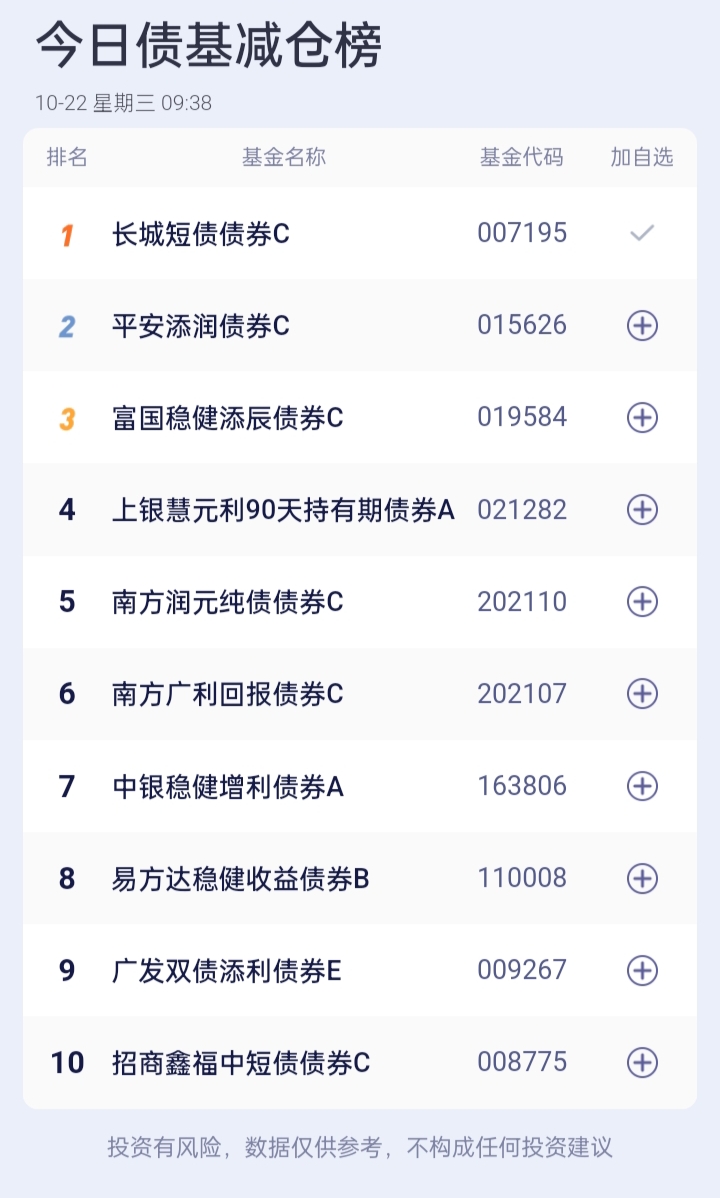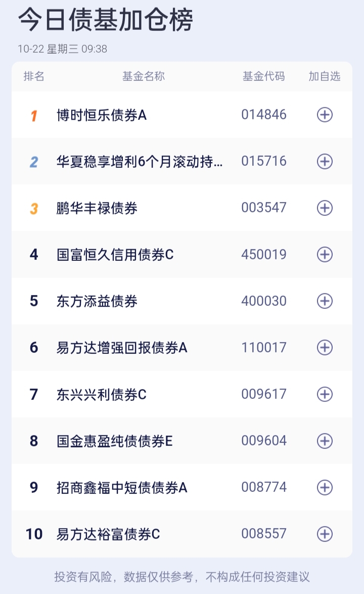$华泰保兴安悦债券C(OTCFUND|020741)$。$鹏华丰禄债券(OTCFUND|003547)$。$南方中债7-10年国开行债券指数A(OTCFUND|006961)$。$永赢稳健增强债券C(OTCFUND|014089)$。$富国优化增强债券E(OTCFUND|018980)$。$易方达增强回报债券A(OTCFUND|110017)$。$方正富邦鸿远债券C(OTCFUND|015909)$。$东方添益债券(OTCFUND|400030)$。$南方中债7-10年国开行债券指数E(OTCFUND|013594)$。$国泰惠丰纯债债券A(OTCFUND|007214)$