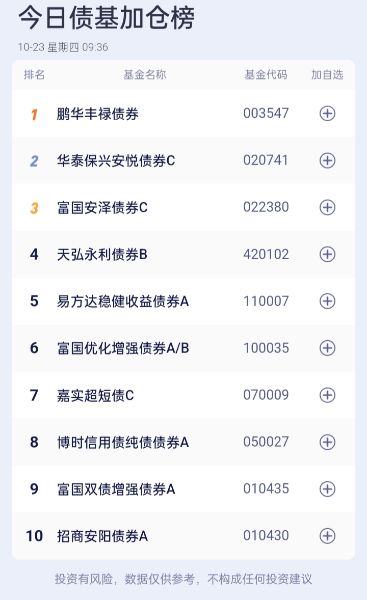 $华泰保兴安悦债券C(OTCFUND|020741)$。$鹏华丰禄债券(OTCFUND|003547)$。$南方中债7-10年国开行债券指数A(OTCFUND|006961)$。$永赢稳健增强债券C(OTCFUND|014089)$。$富国优化增强债券E(OTCFUND|018980)$。$易方达增强回报债券A(OTCFUND|110017)$。$方正富邦鸿远债券C(OTCFUND|015909)$。$东方添益债券(OTCFUND|400030)$。$南方中债7-10年国开行债券指数E(OTCFUND|013594)$。$国泰惠丰纯债债券A(OTCFUND|007214)$