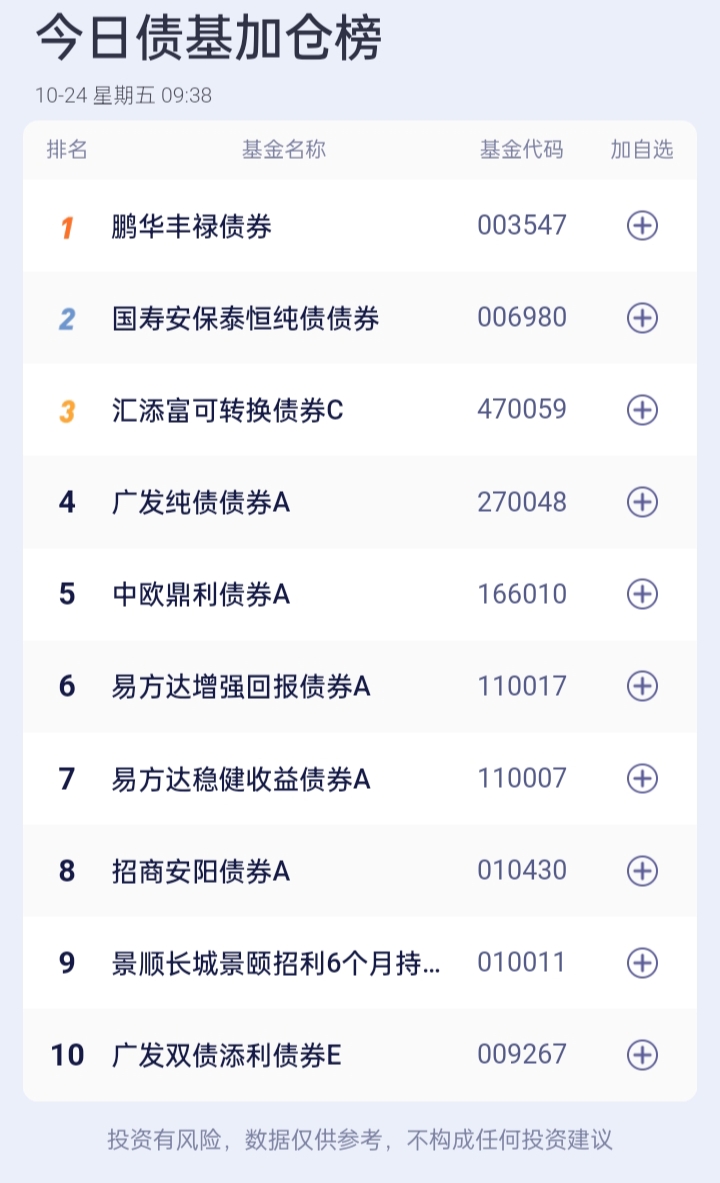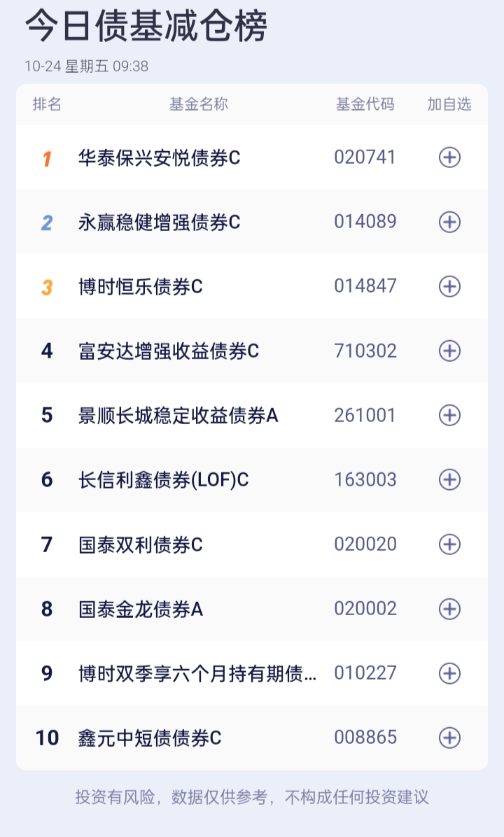 $华泰保兴安悦债券C(OTCFUND|020741)$。$鹏华丰禄债券(OTCFUND|003547)$。$南方中债7-10年国开行债券指数A(OTCFUND|006961)$。$永赢鑫欣混合C(OTCFUND|018603)$。$富国优化增强债券E(OTCFUND|018980)$。$易方达增强回报债券A(OTCFUND|110017)$。$方正富邦鸿远债券C(OTCFUND|015909)$。$东方添益债券(OTCFUND|400030)$。$华泰保兴安悦债券A(OTCFUND|007540)$。$国泰惠丰纯债债券A(OTCFUND|007214)$