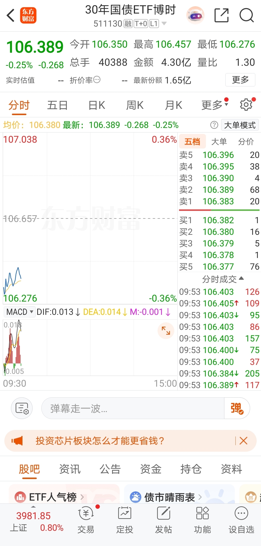 $30年国债ETF博时(SH511130)$ 保险大佬都在偷偷吸货,我也跟一点