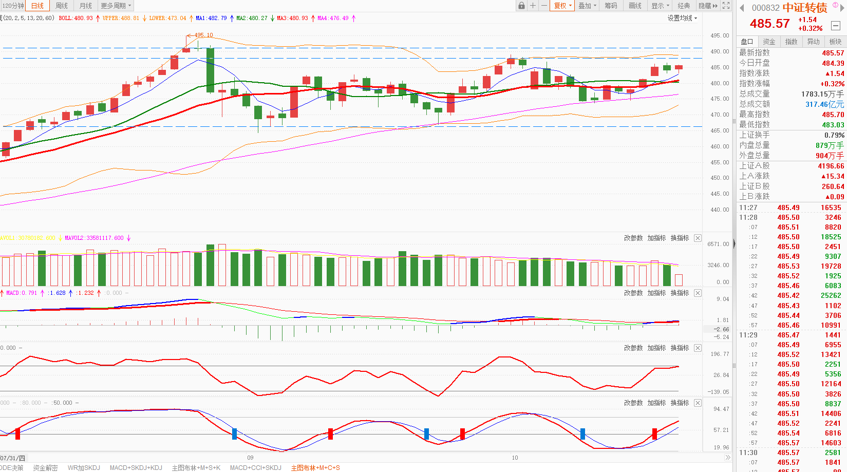 中证转债:涨0.32%,日K线在5日均线之上,KDJ金叉,MACD金叉红柱放大。今天中证转债上涨,日K线探低5日均线后回升,短期仍保持上升走势,目前已接近前高,看能否突破。可适量买入或持基观望。
