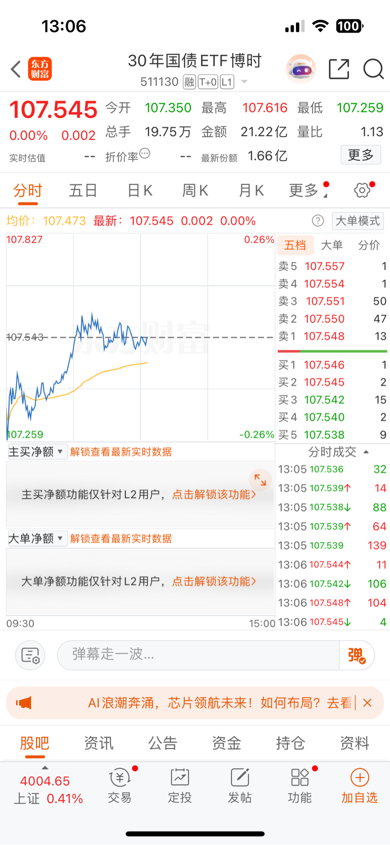 $30年国债ETF博时(SH511130)$ 刚补了点,毕竟央行都开始行动了,此不买更待何时