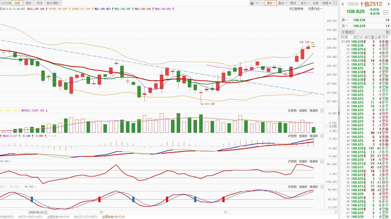 今天10年国债期货平开后冲高回落,跌0.01%,日K线在5日均线之上。