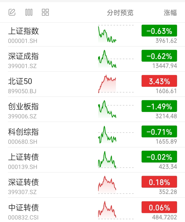A股市场重要指数:1涨4跌。今天偏股混基可能下跌。