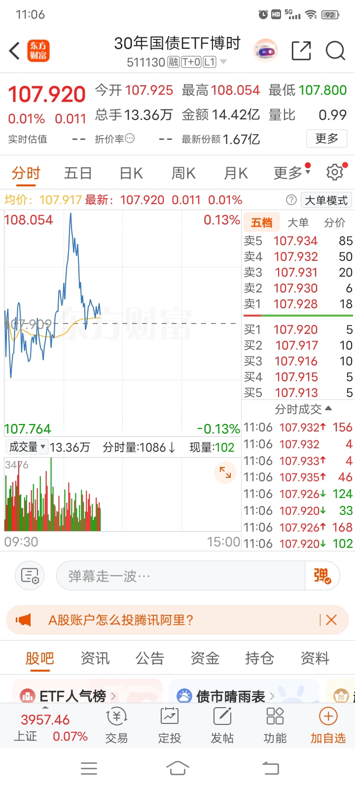 $30年国债ETF博时(SH511130)$ 债基终于争气了,不愧是长债龙头,冲鸭!