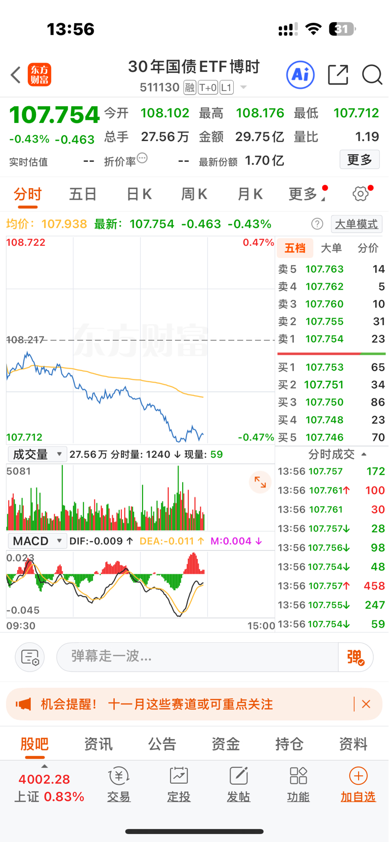 $30年国债ETF博时(SH511130)$ 久期长、弹性大,利率下行涨起来就快