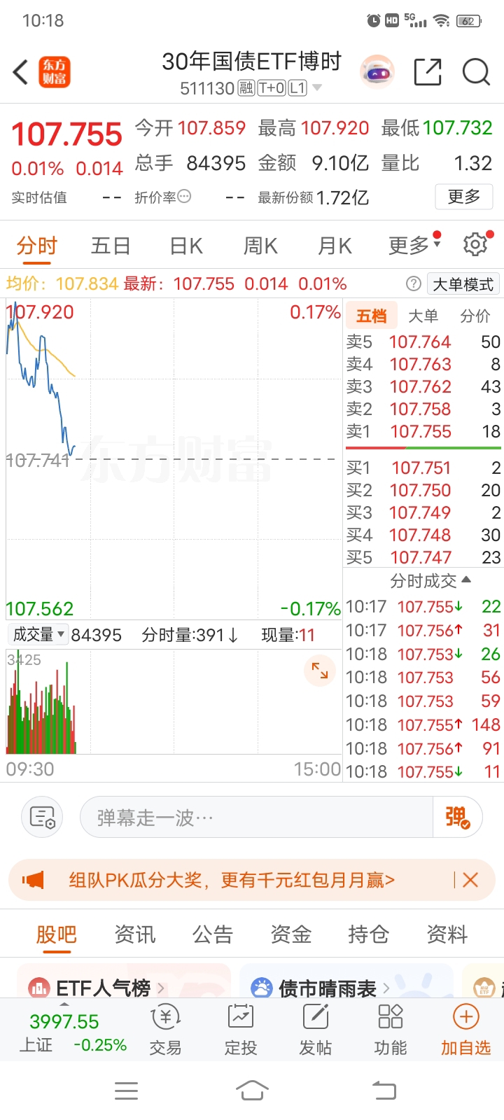 $30年国债ETF博时(SH511130)$ 四季度行情说不定就这么启动了,期待一下