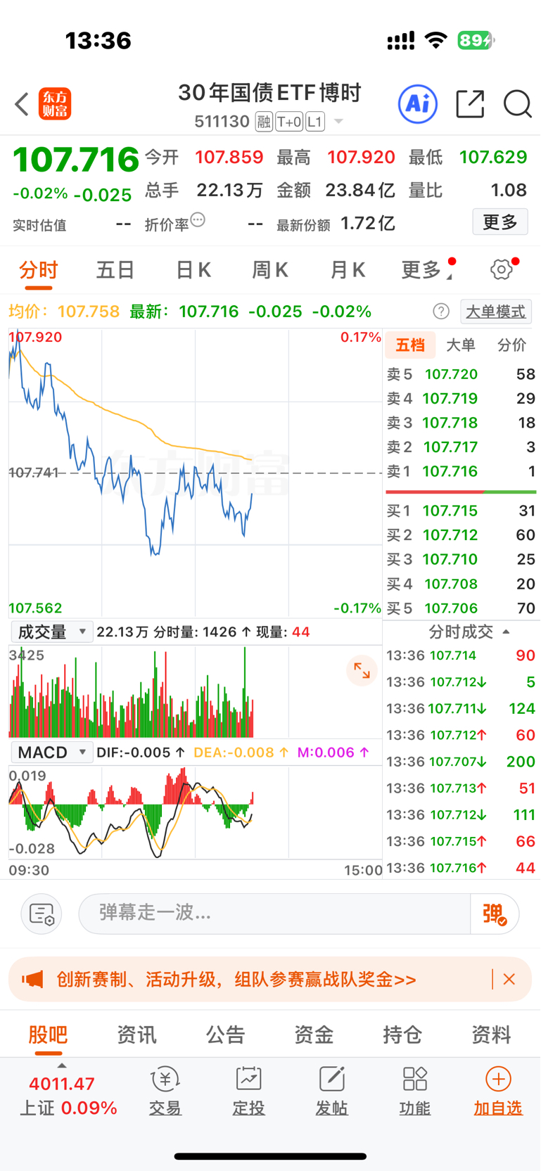 $30年国债ETF博时(SH511130)$ 政策底好像越来越明确了,信心也回来了一点