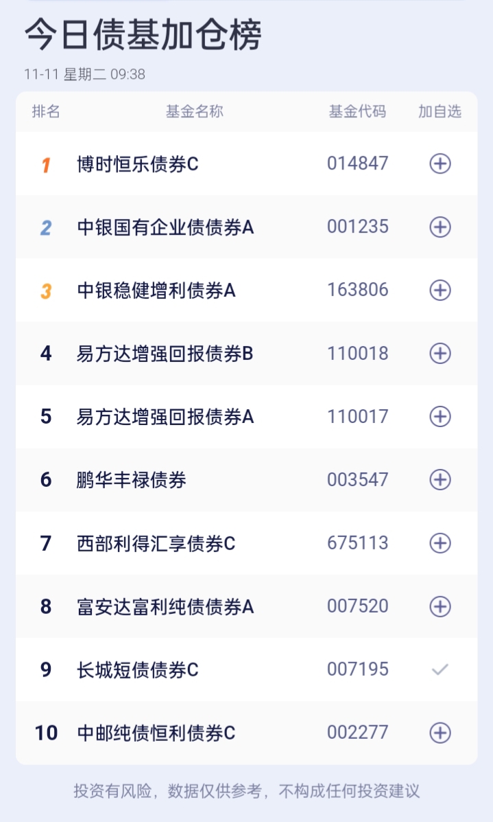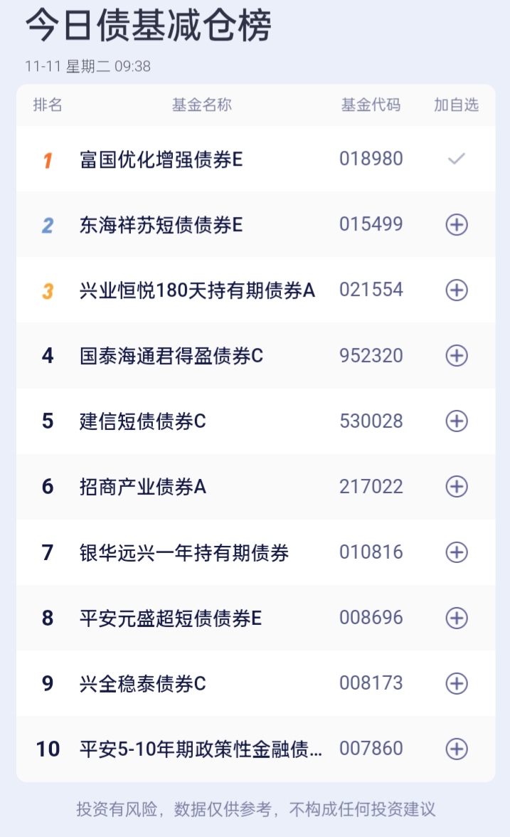 债基加减仓榜