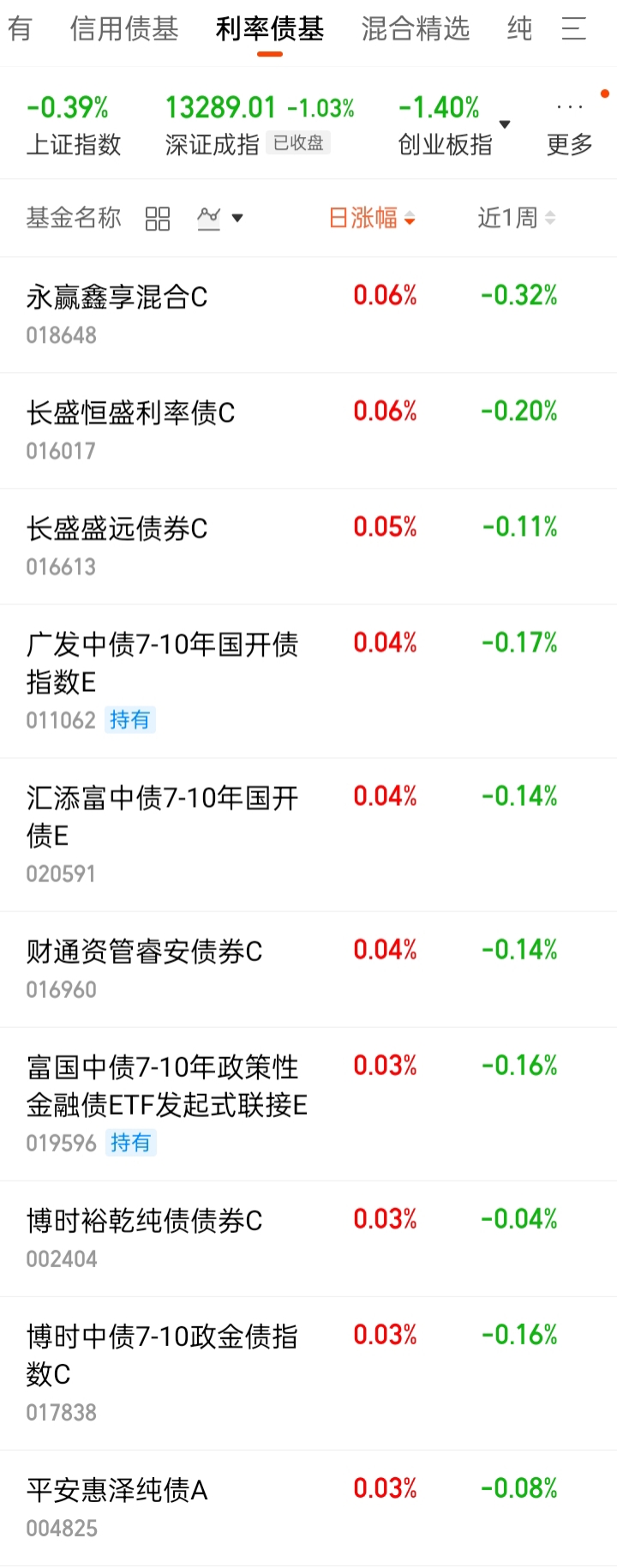 3、利率债基日涨幅排名