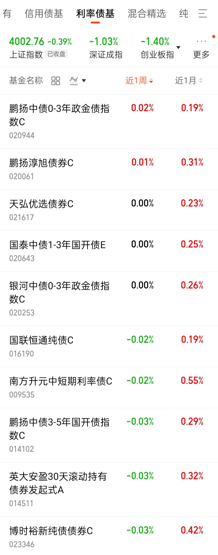 4、利率债基近1周涨幅排名