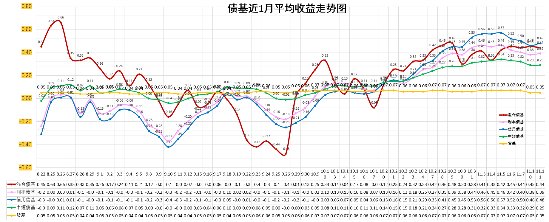 信用债基 :-0.01%。低于货基,低于中短债基。