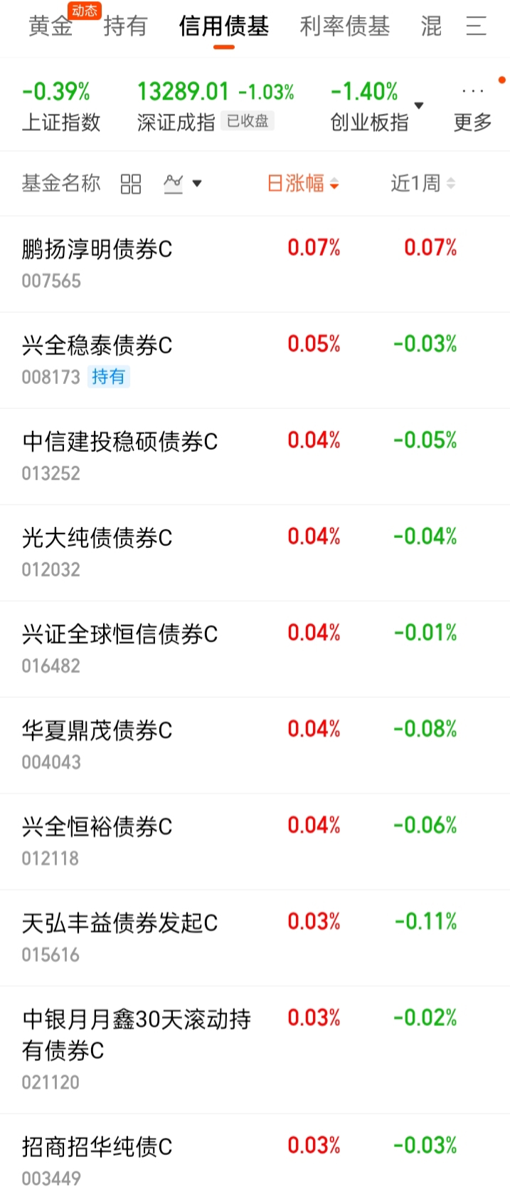 2、信用债基近1周涨幅排名