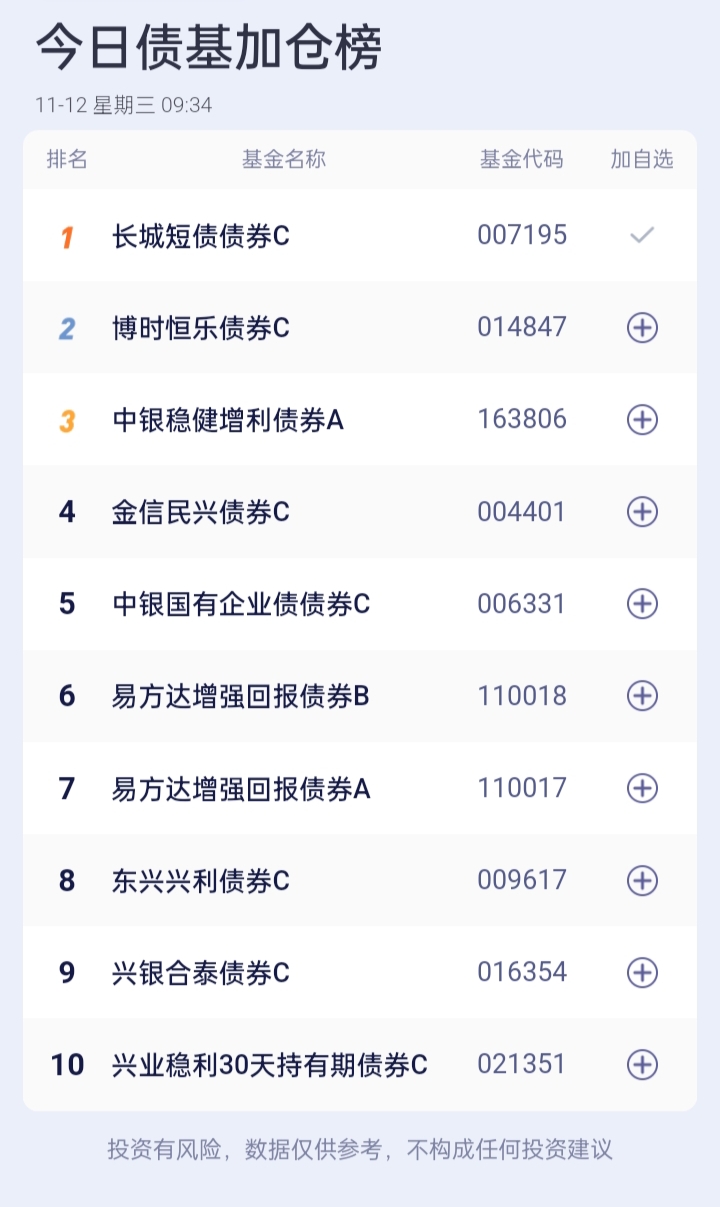$华泰保兴安悦债券C(OTCFUND|020741)$。$鹏华丰禄债券(OTCFUND|003547)$。$南方中债7-10年国开行债券指数A(OTCFUND|006961)$。$永赢鑫欣混合C(OTCFUND|018603)$。$富国优化增强债券E(OTCFUND|018980)$。$易方达增强回报债券A(OTCFUND|110017)$。$方正富邦鸿远债券C(OTCFUND|015909)$。$东方添益债券(OTCFUND|400030)$。$华泰保兴安悦债券A(OTCFUND|007540)$。$国泰惠丰纯债债券A(OTCFUND|007214)$
