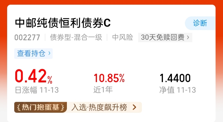 今天中邮睿信收72蛋,中邮纯债恒利收42蛋,均排名同类涨幅前列,太给力了!