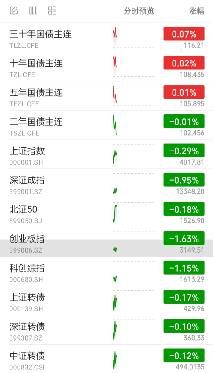 股市主要指数全部下跌,对债市有一定提振作用。今天偏股混合债基可能碎蛋。