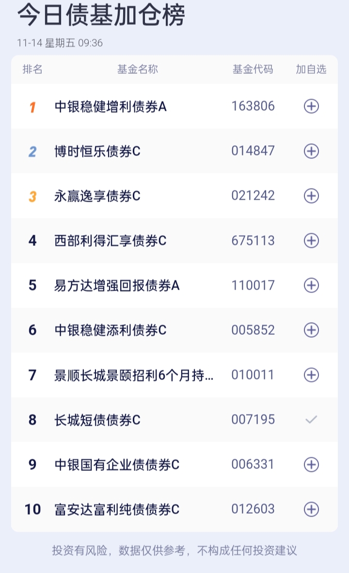 $华泰保兴安悦债券C(OTCFUND|020741)$。$鹏华丰禄债券(OTCFUND|003547)$。$南方中债7-10年国开行债券指数A(OTCFUND|006961)$。$永赢鑫欣混合C(OTCFUND|018603)$。$富国优化增强债券E(OTCFUND|018980)$。$易方达增强回报债券A(OTCFUND|110017)$。$方正富邦鸿远债券C(OTCFUND|015909)$。$东方添益债券(OTCFUND|400030)$。$华泰保兴安悦债券A(OTCFUND|007540)$。$国泰惠丰纯债债券A(OTCFUND|007214)$