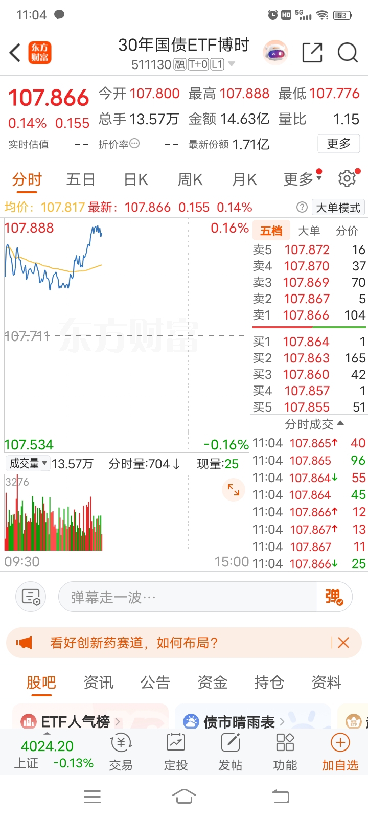 $30年国债ETF博时(SH511130)$ 开头不错,希望后面别掉链子#六氟磷酸锂热度不减,电解液添加剂火了# $锂电池(BK0574)$