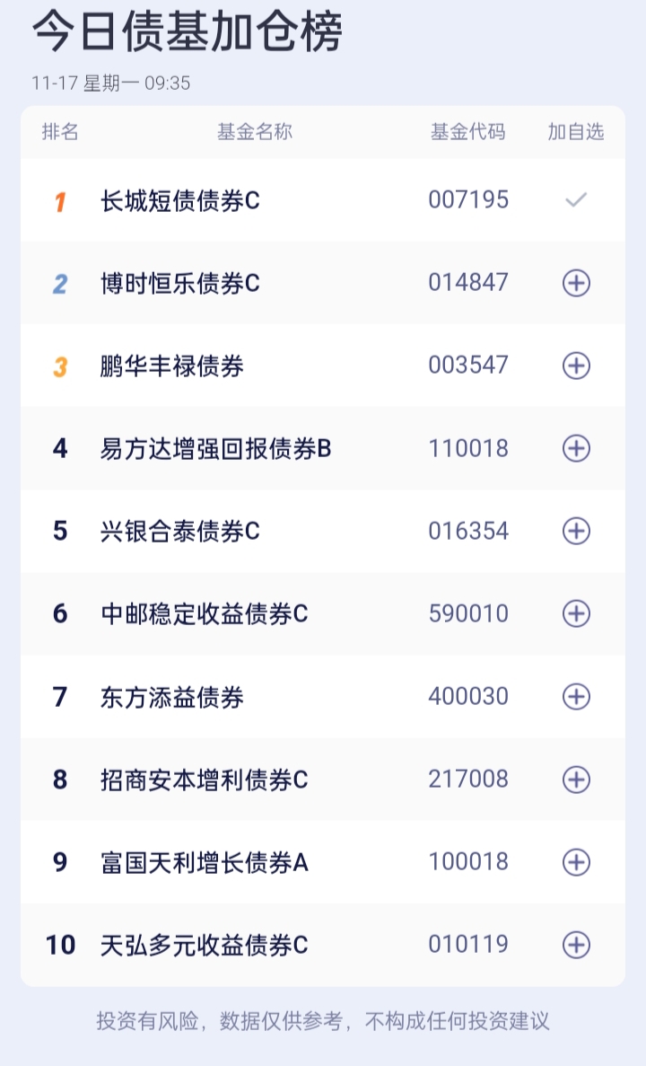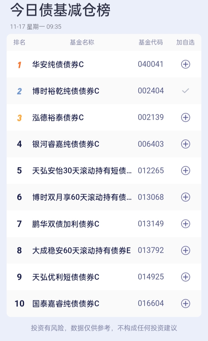 债基加减仓榜
